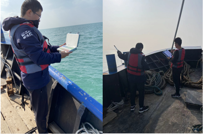 此次大小潮期間12名檢測人員調用了4艘船只,按監測方案采集檢測了水質(zhì)、生態(tài)、沉積物、漁業(yè)資源,同時(shí)安排4名檢測人員同步開(kāi)展陸上潮間帶采樣檢測工作。