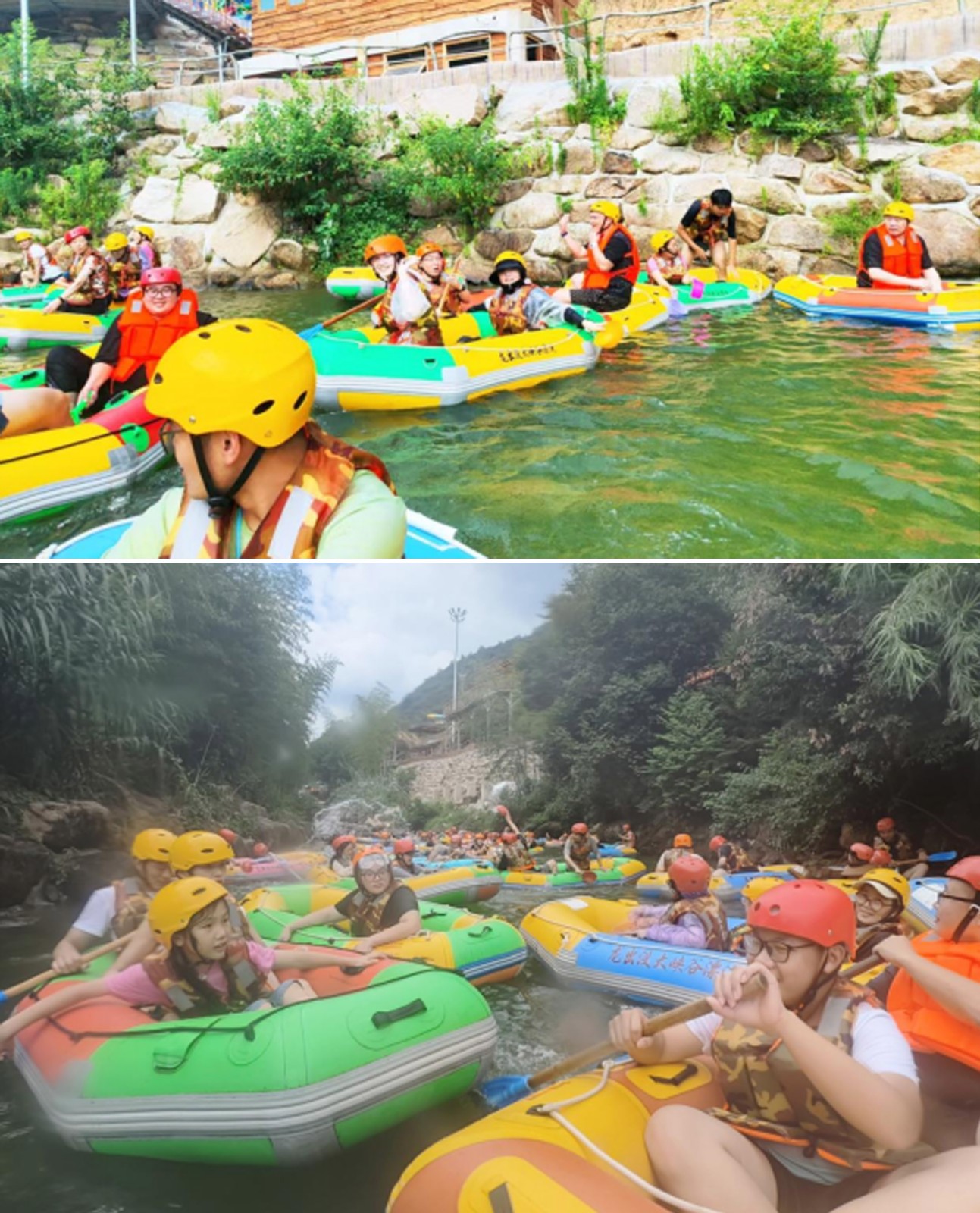 小伙伴們換上裝備,踏進(jìn)皮筏,兩兩一隊,水瓢、水槍齊上陣,小伙伴們瞬間化身“漂流勇士”,寧靜的河道霎時(shí)間成為潑水狂歡的戰場(chǎng),歡聲笑語(yǔ)與水花四濺交織在一起。清涼的溪水驅散了夏日的燥熱,激烈的“對戰”更點(diǎn)燃了團隊的活力與激情,一場(chǎng)?酣暢淋漓的夏日消暑大戰?讓大家徹底放飛自我,拉近了彼此距離,也為第一天的行程注入了無(wú)限活力。